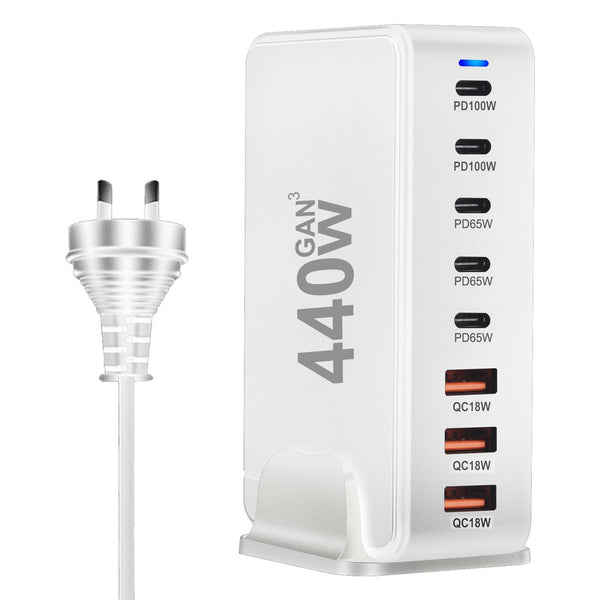 440W GaN USB Power Adapter Travel Charger with 3 x USB, 5 x PD Port, Plug:AU Plug(White)