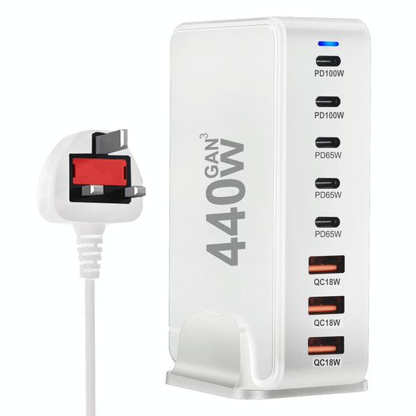 440W GaN USB Power Adapter Travel Charger with 3 x USB, 5 x PD Port, Plug:UK Plug(White)