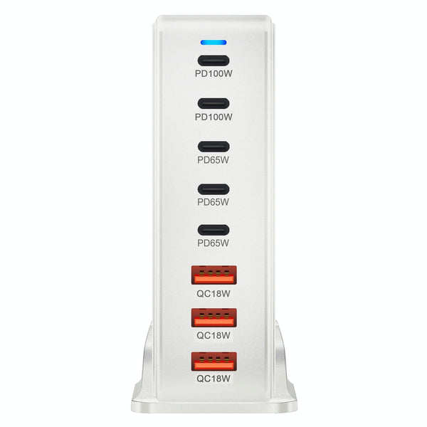 3. Versatile Charging: This 440W charger can charge multiple devices at once, with three USB-A ports that are compatible with QC18W protocol and five USB-C ports that are compatible with PD65W, and PD100W.