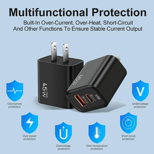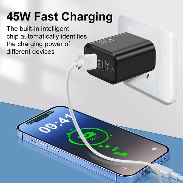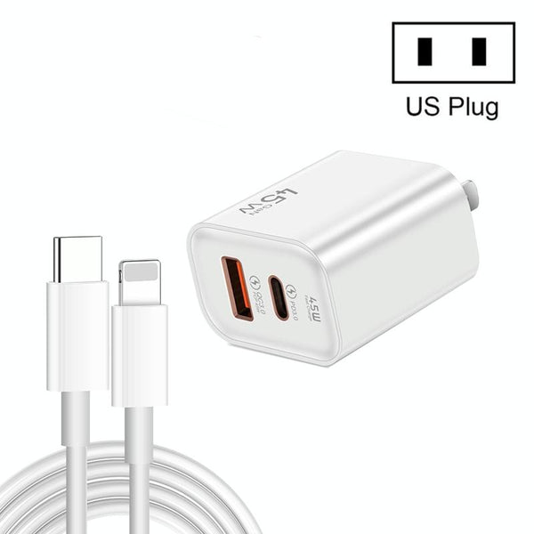 45PQ 45W PD25W + QC3.0 20W USB Super Fast Charger with Type-C to 8 Pin Cable, US Plug(White)