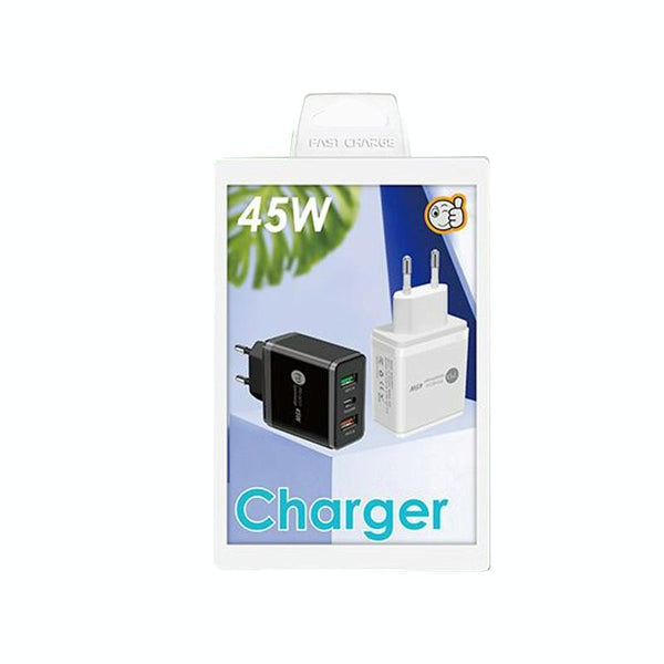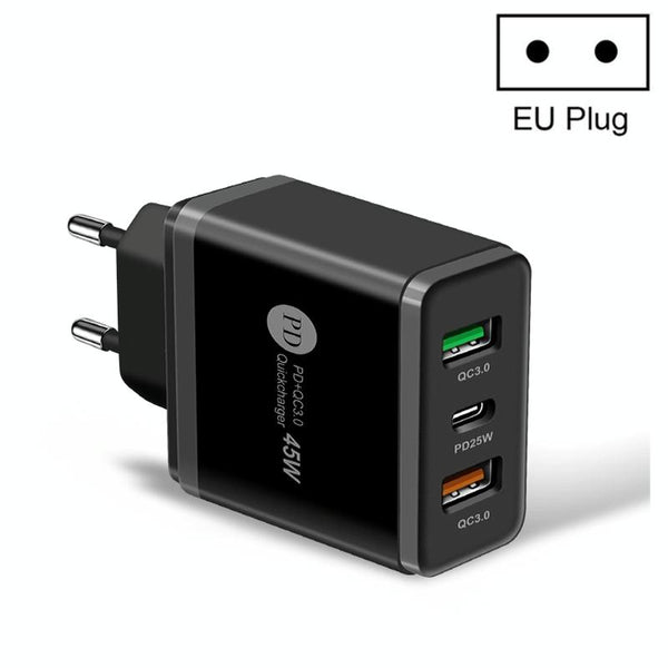 45W PD3.0 + 2 x QC3.0 USB Multi Port Quick Charger, EU Plug(Black)