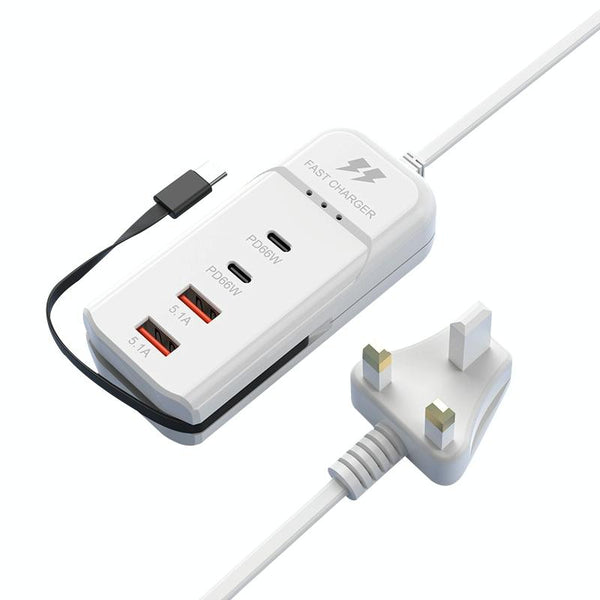 5 in 1 2 x PD 66W, 2 x USB Fast Charger Smart Power Socket, Length:1m(UK Plug)