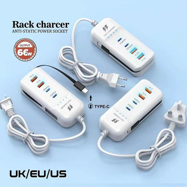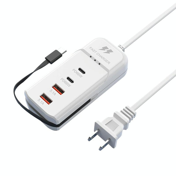 5 in 1 2 x PD 66W, 2 x USB Fast Charger Smart Power Socket, Length:1m(US Plug)