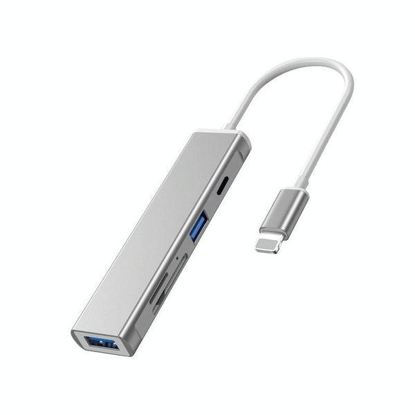 5 in 1 8 Pin to SD / TF Card Slot + 3 USB Ports Multifunctional Docking Station HUB(Silver)