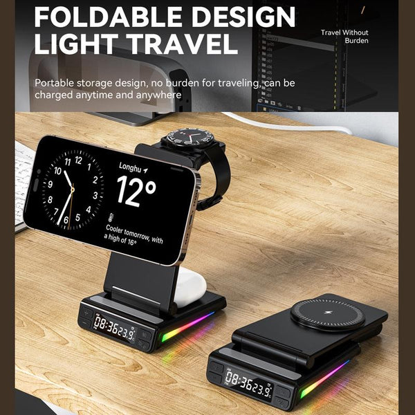 5. The fast wireless charging station is foldable, lightweight and portable, suitable for carrying in a bag or suitcase.