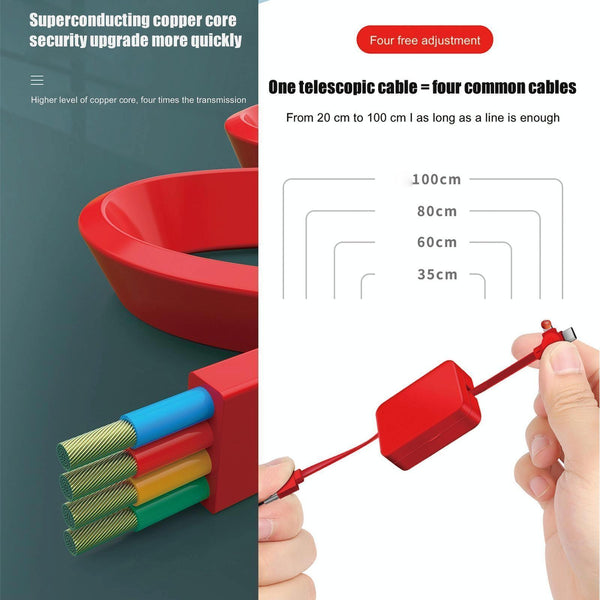 2. The length of the data cable is retractable and can be freely adjusted in four levels from 20cm to 100cm.
