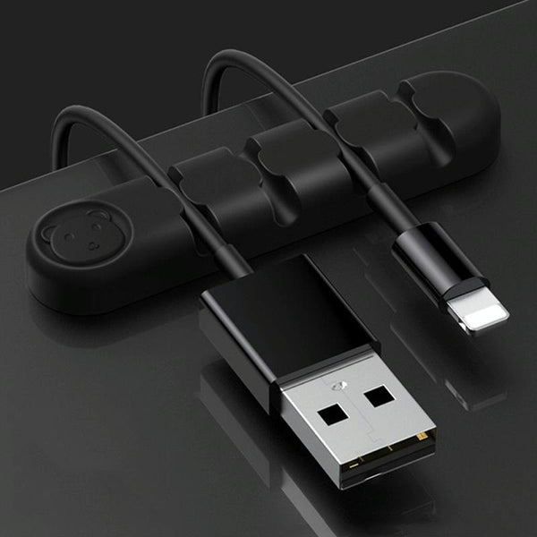 5 PCS 4 Holes Bear Silicone Desktop Data Cable Organizing And Fixing Device(Black)