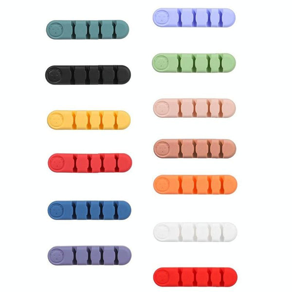 5 PCS 4 Holes Bear Silicone Desktop Data Cable Organizing And Fixing Device(Dark Green)