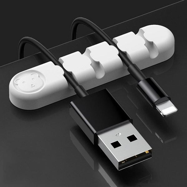 5 PCS 4 Holes Bear Silicone Desktop Data Cable Organizing And Fixing Device(White)