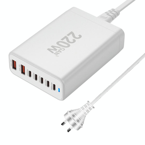 5C2A-220W GaN 220W USB x 2, USB-C / Type-C x 5 Fast Charger, Plug Type:AU Plug(White)