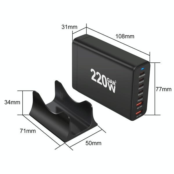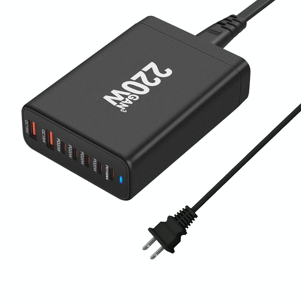 5C2A-220W GaN 220W USB x 2, USB-C / Type-C x 5 Fast Charger, Plug Type:US Plug(Black)