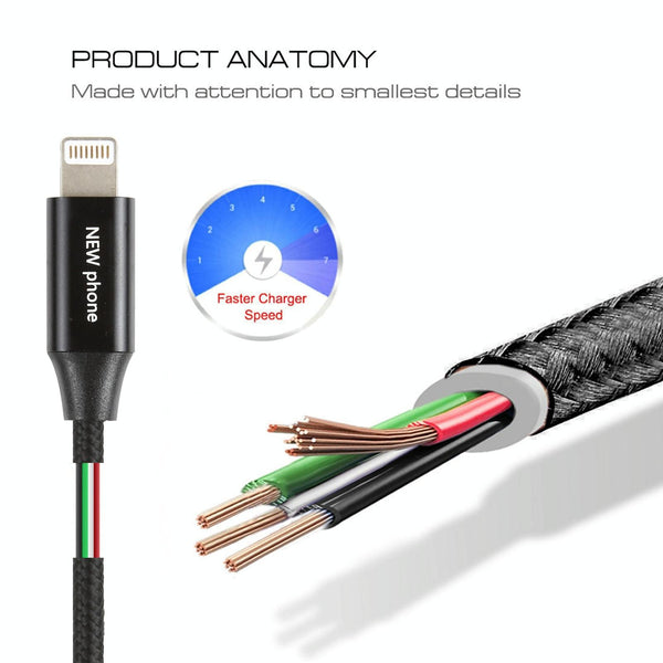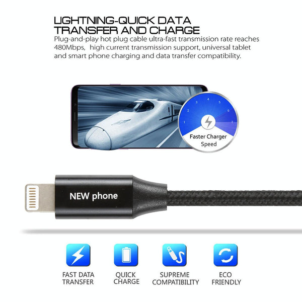 5V 2A 8 Pin Male to 8 Pin Male Braided Data Cable