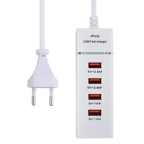 5V 4.1A 4 USB Ports Charger Adapter with Power Plug Cable, Cable Length: 1.5m, EU Plug(White)