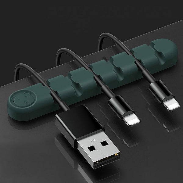 6 Holes Bear Silicone Desktop Data Cable Organizing And Fixing Device(Dark Green)