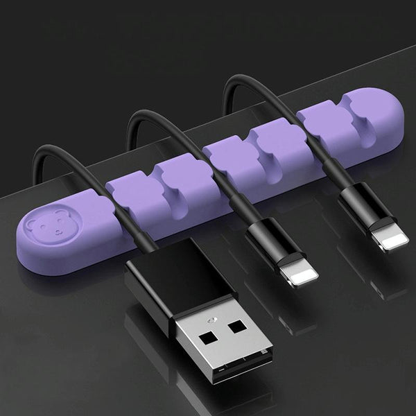 6 Holes Bear Silicone Desktop Data Cable Organizing And Fixing Device(Lilac Purple)