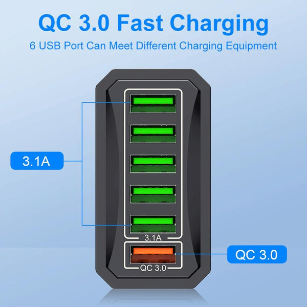 6-Ports Multifunctional Quick Charging USB Travel Charger Power Adapter, Model: White EU Plug