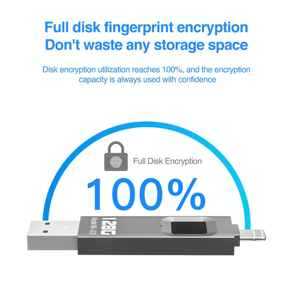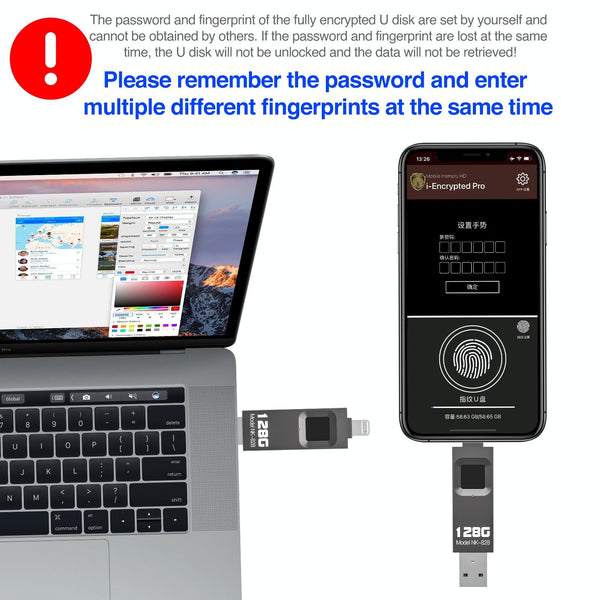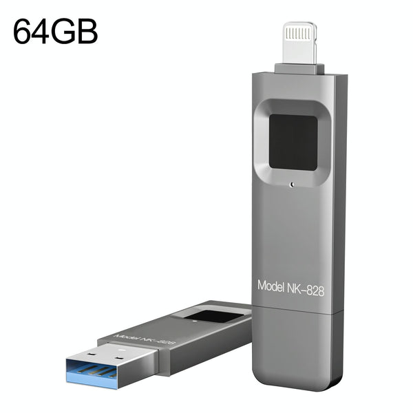 64GB NK-828 8 Pin + USB 2 in 1 Zinc Alloy U Disk with Fingerprint Unlock