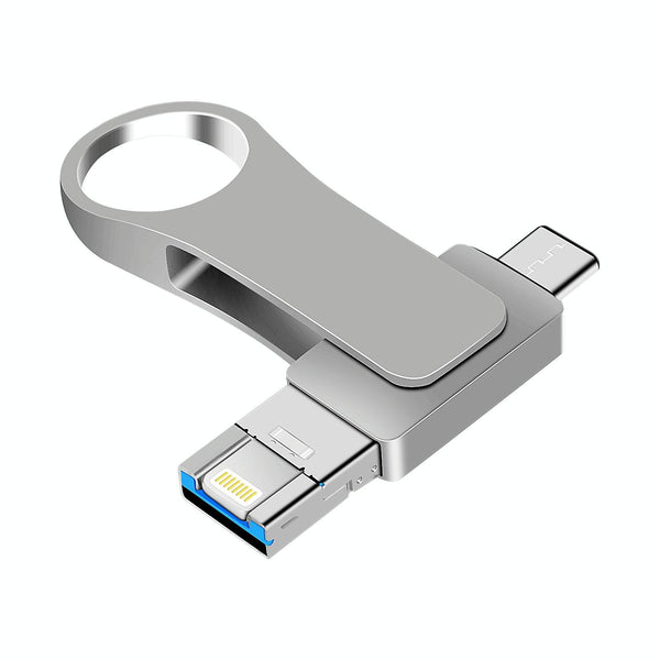 64GB USB 3.0 + 8 Pin + USB-C / Type-C 3 in 1 Mobile Computer Metal U-Disk(Silver)