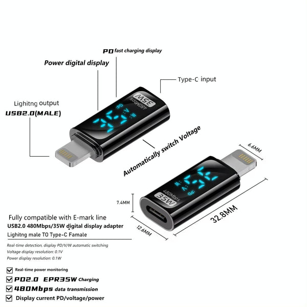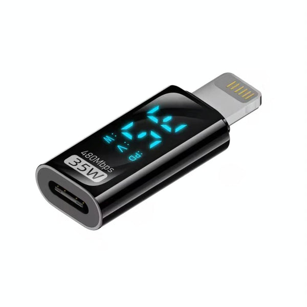 8 Pin Male to Type-C Female 35W Charging Adapter with Digital Display(Black)