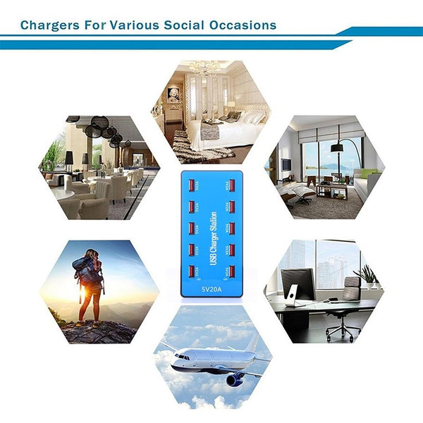 A5B 100W 10 Ports USB Smart Charging Station with Indicator Light, AU Plug