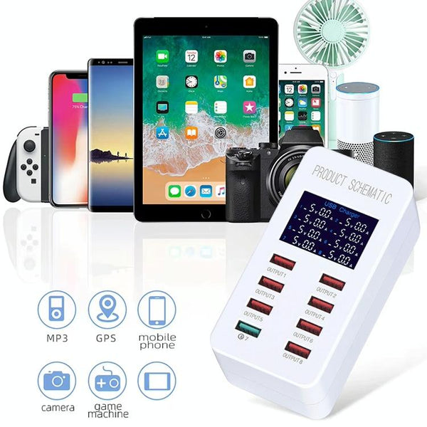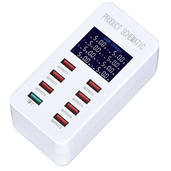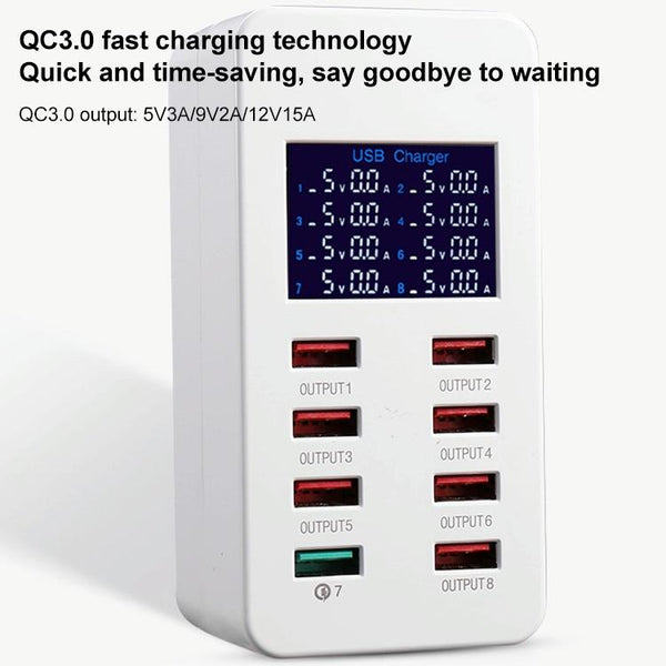 A8 50W 8 Ports USB + QC3.0 Smart Charging Station with Digital Display AC100-240V, AU Plug