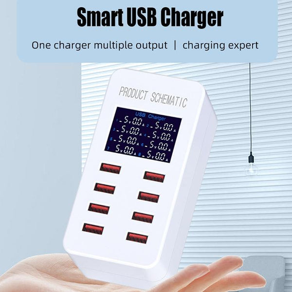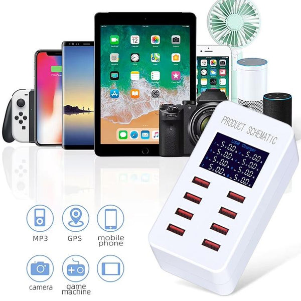 A8B 50W 8 Ports USB Smart Charging Station with Digital Display, Plug:UK Plug