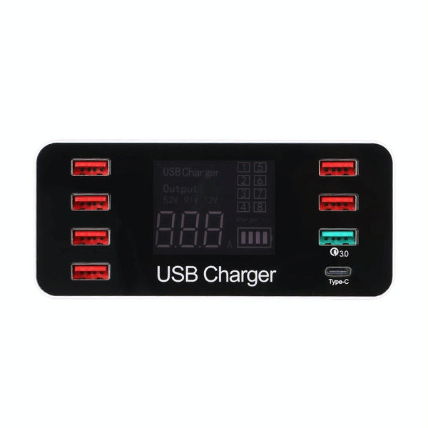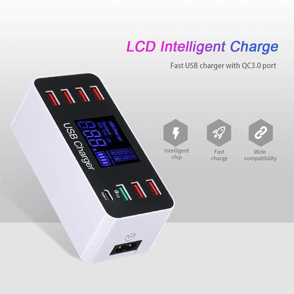 A9 Plus (Global Version) Multi-function AC 100V~240V 8 Ports USB Digital Display LCD Detachable Charging Station Smart Charger with Wireless Charger,Support QC3.0 (White)