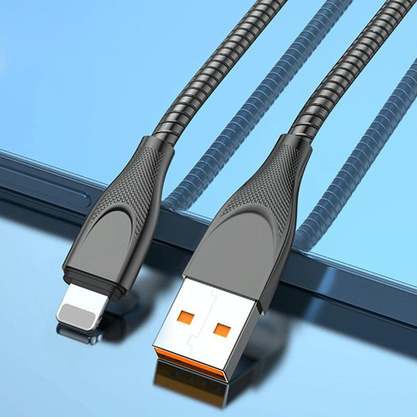 ADC-009 USB to 8 Pin Zinc Alloy Hose Fast Charging Data Cable, Cable Length: 1m (Gun Metal)