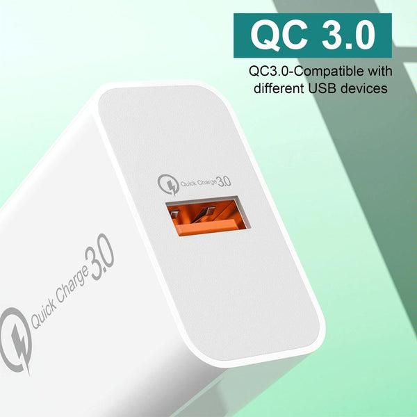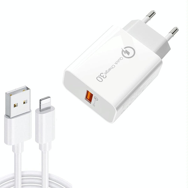 APD-2003 18W QC3.0 Single Port USB Charger with 1m USB to 8 Pin Data Cable(EU Plug)