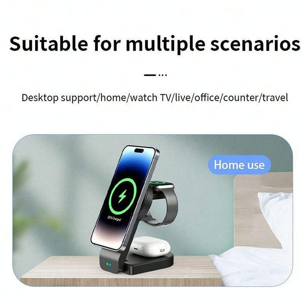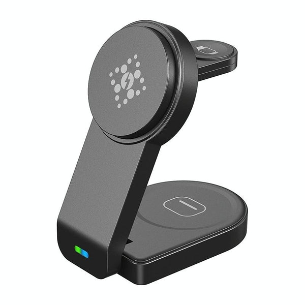 B-23 3 in 1 Foldable Magnetic Wireless Charger Phone Holder, Plug:EU Plug(Black)