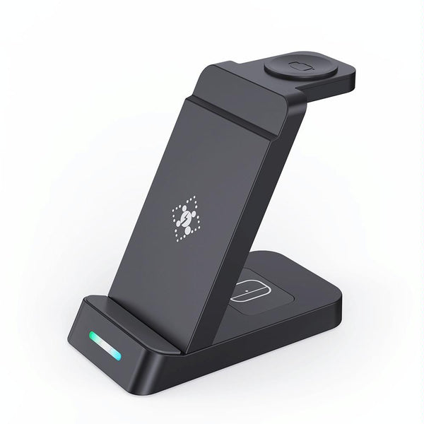 B20A 15W Qi Wireless Charger 3-in-1 Vertical Stand Phone Holder for Samsung Watch / Galaxy Buds(Black)