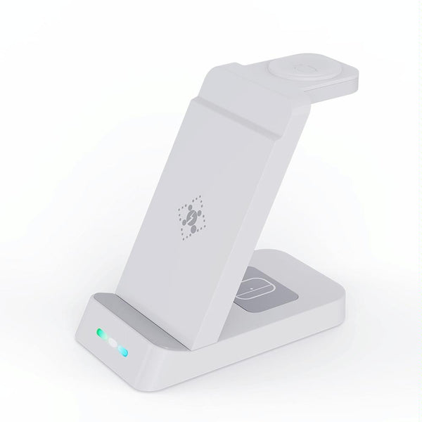 B20A 15W Qi Wireless Charger 3-in-1 Vertical Stand Phone Holder for Samsung Watch / Galaxy Buds(White)