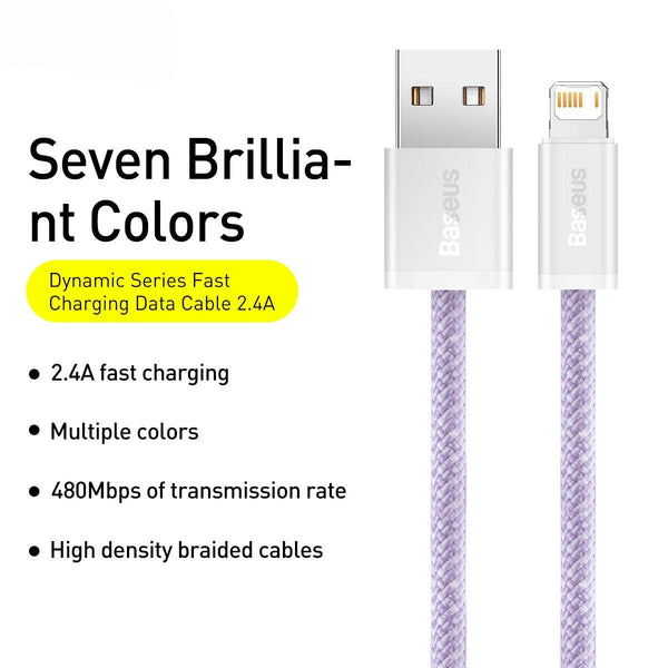 Baseus CALD000405 Dynamic Series 2.4A USB to 8 Pin Fast Charging Data Cable, Cable Length:1m(Purple)