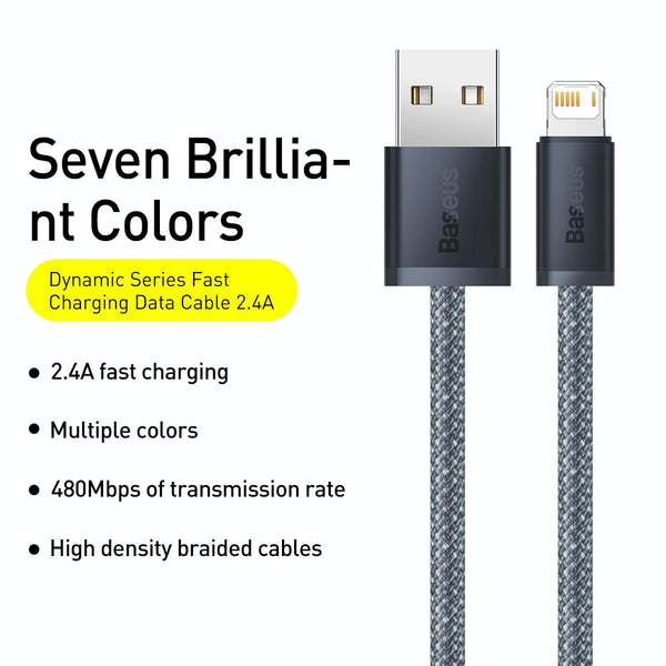 Baseus CALD000516 Dynamic Series 2.4A USB to 8 Pin Fast Charging Data Cable, Cable Length:2m(Dark Grey Blue)