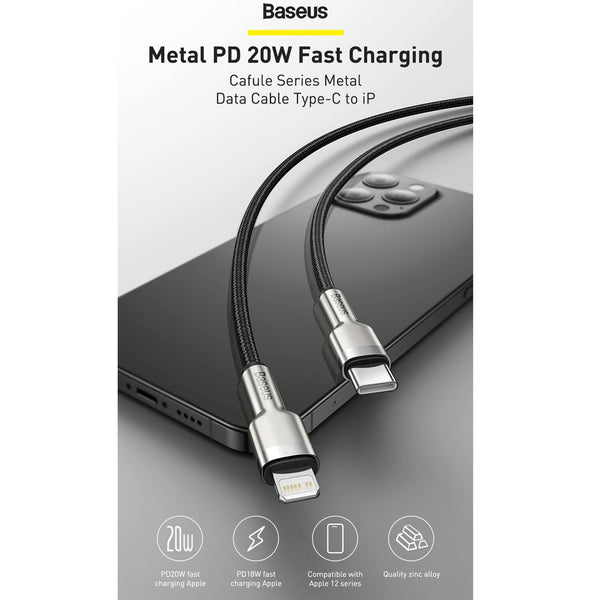 Baseus CATLJK-B01 Cafule Series 20W Type-C / USB-C to 8 Pin PD Metal Charging Data Cable, Length:2m(Black)