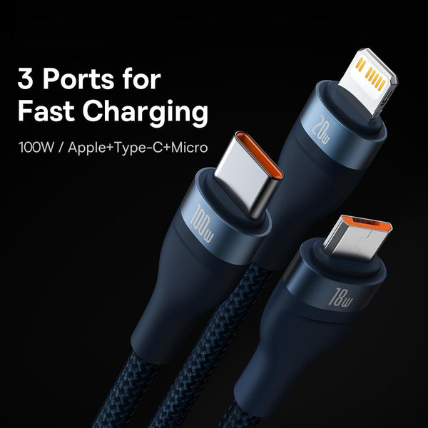 Baseus Flash Series II 1.2m USB + Type-C to Micro USB + 8 Pin + Type-C 100W Fast Charging Cable(Blue)