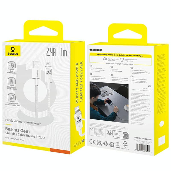 Baseus Gem Transparent 2.4A USB to 8 Pin Fast Charging Data Cable, Length:1m(White)