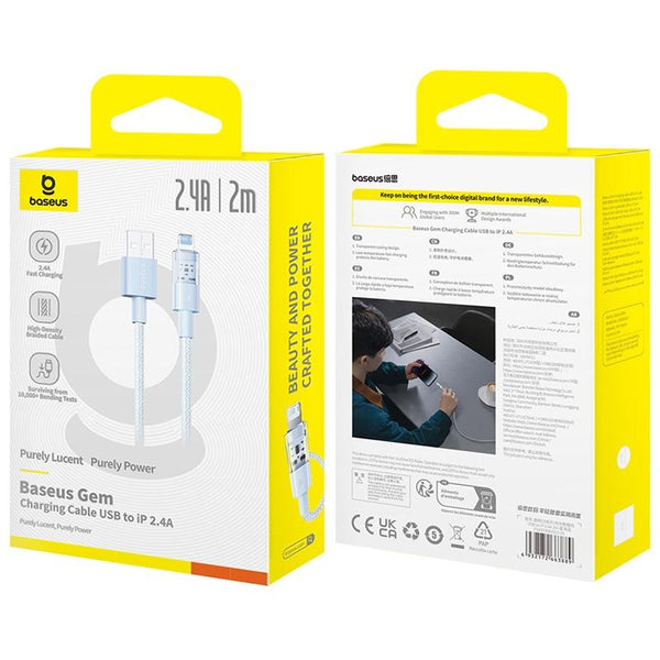 Baseus Gem Transparent 2.4A USB to 8 Pin Fast Charging Data Cable, Length:2m(Blue)