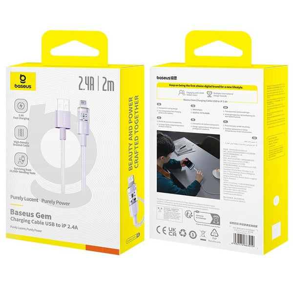 Baseus Gem Transparent 2.4A USB to 8 Pin Fast Charging Data Cable, Length:2m(Purple)