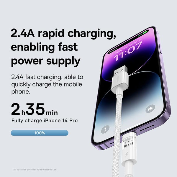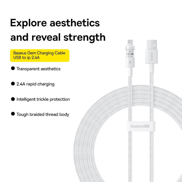 Baseus Gem Transparent 2.4A USB to 8 Pin Fast Charging Data Cable, Length:2m(White)
