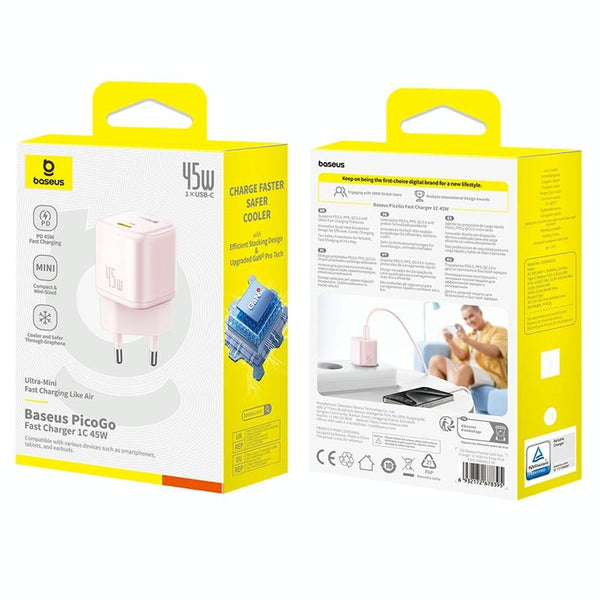 Baseus PicoGo 45W GaN Type-C Fast Charger, EU Plug(Pink)