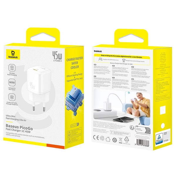 Baseus PicoGo 45W GaN Type-C Fast Charger, EU Plug(White)