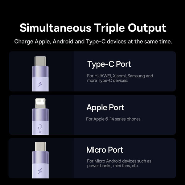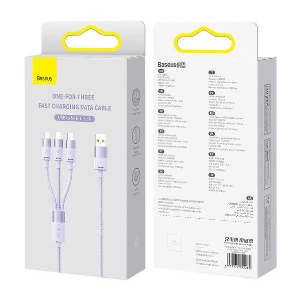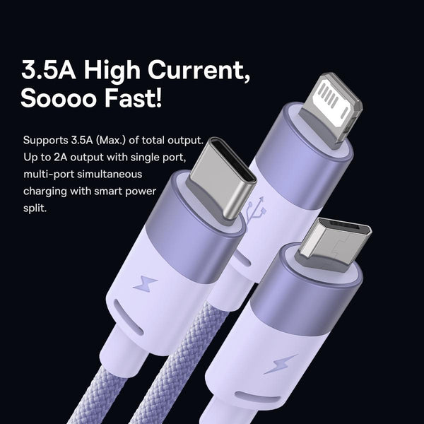 Baseus StarSpeed 3.5A USB to 8 Pin + Type-C + Micro USB 3 in 1 Fast Charging Data Cable, Length:1.2m (Purple)