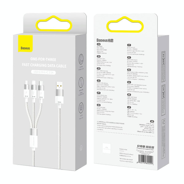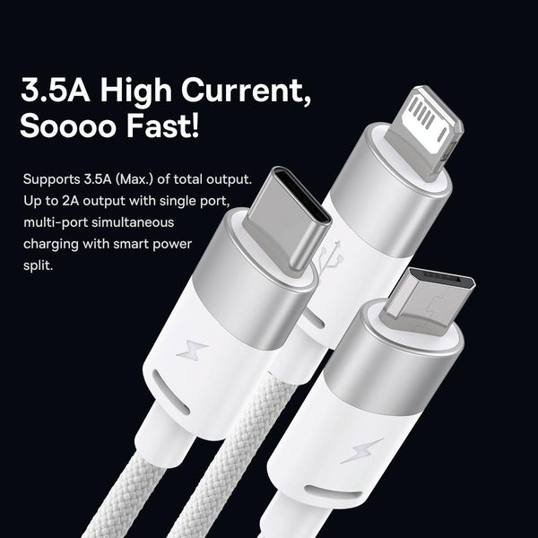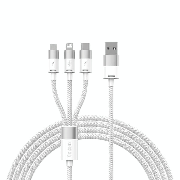 Baseus StarSpeed 3.5A USB to 8 Pin + Type-C + Micro USB 3 in 1 Fast Charging Data Cable, Length:1.2m (White)