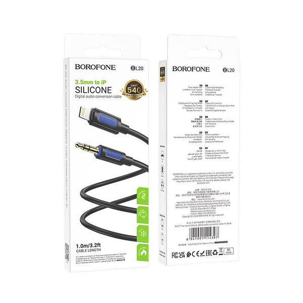 Borofone BL20 True Sound AUX Silicone Audio Cable, 3.5mm to8 Pin Cable(Black)