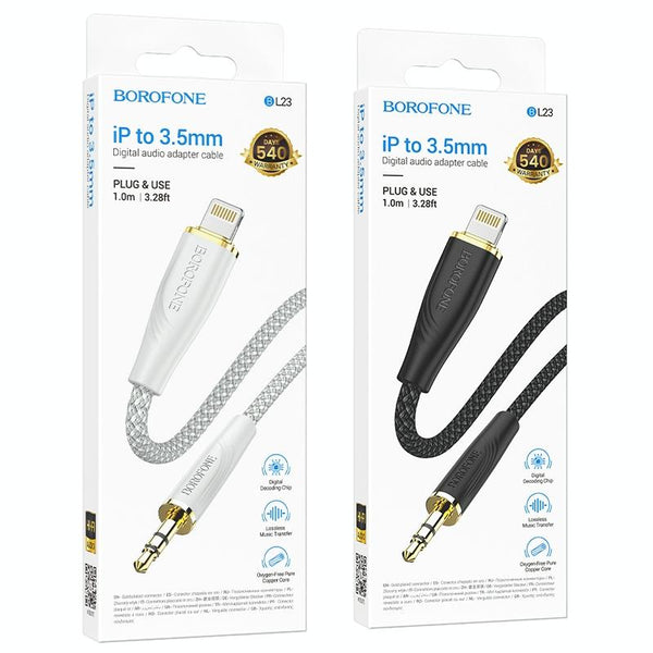 Borofone BL23 3.5mm to 8 Pin Refinado AUX Audio Cable, Length:1m(Black)