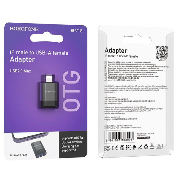 Borofone BV18 8 Pin Male to USB Female USB2.0 OTG Adapter(Black)