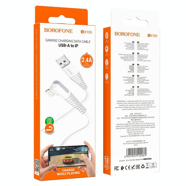 Borofone BX105 2.4A USB-A to 8 Pin Fast Charge Data Cable, Length:1m(White)