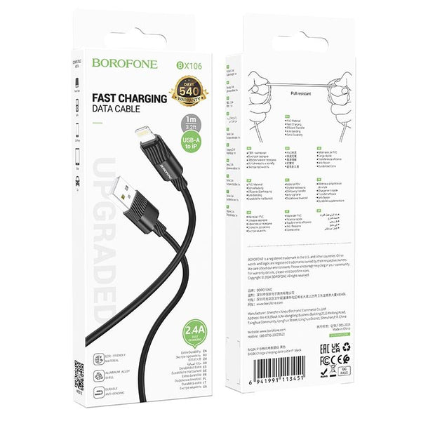 Borofone BX106 2.4A USB-A to 8 Pin Fast Charge Data Cable, Length:1m(Black)