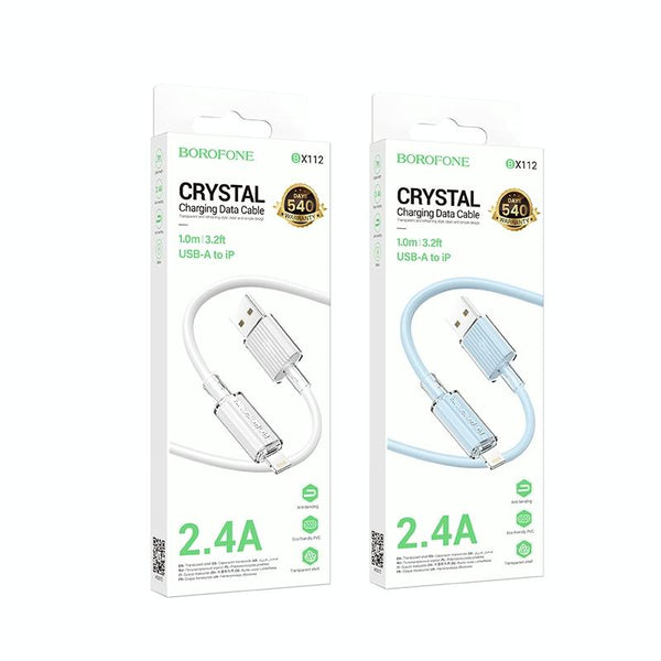 Borofone BX112 Lemon 2.4A USB to 8 Pin Data Cable, Length: 1m(White)